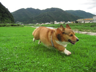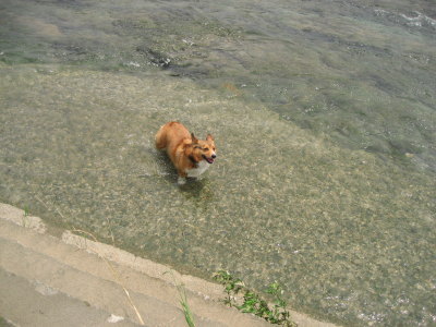 | 7月18日(水) ん〜。なかなかすっきり晴れません。いまにも雨が降りそうな感じだと、なかなか洗濯物を外に干す事が出来ないし・・・。久々の河川敷に行くと、まだ川の水が多くて流れも速かった。それでも川に入りたそうなので、違う場所でポチャを許可。そんなに暑い訳じゃないのに、水に入りたいらしい。(^_^;) そうこうしてると雨がポツポツ。ババがいる時にこれをやられると大変だ。やっぱりアトムか私かどちらかが雨を呼んでるらしい。(苦笑) |