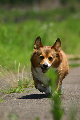 今日は暑くなってきた。お昼のお散歩は河川敷へ。アトムは走る時にど〜も吠える傾向にあって、わんこらうるさい。本犬は、楽しいとかうれしいとかテンションが上がってる状態なんだろうけど。大型犬並みの声だから、結構うるさい。(苦笑) これはもうどうにもならないのかなぁ・・・。 |