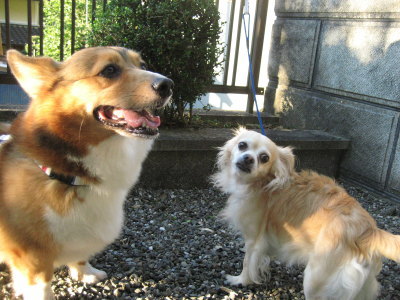 今日は妹が帰省してくるので、駅まで迎えに行って、買い物して実家へ。実家にいると兄がもんたを連れてやって来た。もんたはアトムを見るなり大喜びで、しっぽブリブリで、近寄りたくて仕方ないのに、相変わらずもんたが嫌いなアトム。挨拶さえしようとせず、絶対に寄せつけません。(苦笑) その後、墓掃除に行ったので、一緒に写真を撮ろうとしても、なかなか上手くいきませんでした。(^_^;) そこまで嫌わなくても・・・と思うんだけど、すっかり一人っ子気質にしてしまったようだ。そして、ここからの帰りは、当然のように途中の溝に入ってクールダウンのアトムでした。(苦笑) |