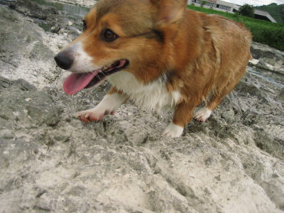 今日は旦那のお休み。午前中は病院へ。レントゲンを見ると、随分骨折のヒビが薄くなってきているよう。端がもう少し繋がってない感じだけど。もう治ったんじゃないかと言う旦那に、お医者さんは「10歳の子でも無理です!」ときっぱり。(苦笑) 後1週間はギブスをする事に。その後は、多少動かしても骨がずれる事はないだろうから、もう1週間の我慢・・・と。今回は足首が曲がるようにと、短いギブスにして貰ったので、随分と歩きやすそうだ。アトムはこんなに暑い日は、やはり川遊びを・・・と思うのだけど、今日は河川敷で我慢して貰う事にした。水量が少ないので、あまり遊ばせたくないのだけど仕方がない。アトム的にはどんな水でもOKなんだろうけどね。(苦笑) 今日は進んで泳ぎ回ってた。やっぱ暑いよねー。 |