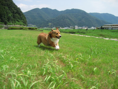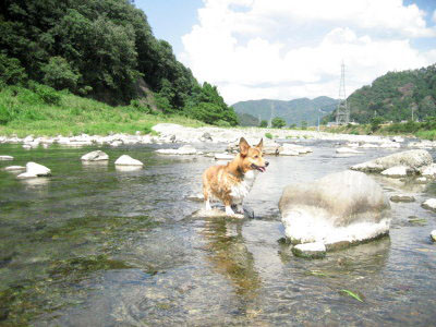 朝のお散歩は少しだけ涼しかった。こう暑いとせめて朝晩だけでも涼しくなってくれるとうれしいんだけどなぁ・・・。昨日、旦那のおもちゃの発送メールが届いていたので、お出掛けなしの予定だった。時間指定は午前中だったけど、昼前になっても届かず。ネットで情報検索すると、まだ取次店まで到着していないよう。まだお盆休みの影響? 到着は夕方かもよーと、お昼ご飯を食べに出掛けて、少しだけアトムの川遊びに行く事にした。朝来の川に到着すると、なんと先着が。(^_^;) こんなマイナーな場所なのに〜。とりあえず車を止めてみると、もっと上流の方で遊んでいるので、少しだけ遊んですぐに撤収しようとアトムを降ろした。そしたら、今までビーチで使うような小さいテントの中にいた母親と赤ちゃんが出てきて、場所を確保しておくかのように川に立ちはだかってしまった。(>_<) ただでさえ狭い場所。そんな所に立たれると、アトムのリードを離す訳にもいかないので、泳がせる事が出来ない。(泣) しばらく様子を見ていたけど、一向に動かないので諦めて場所を変える事にした。子供と父親はもっと上で遊んでるんだから、少しくらい遊ばせてくれてもいいのに〜。ぷんぷん。もう少し上流に行って、ようやく水遊び。ここだと下りる場所に困るので旦那は上で見学。少しだけ遊んで、お水を汲んで帰りました。ペットボトル持参で行ったら、汲んだ途端に結露するくらい冷た〜いお水。ここのお水だとアトムにもOKだしね。夕方になっても旦那のおもちゃは到着せず。あららん。