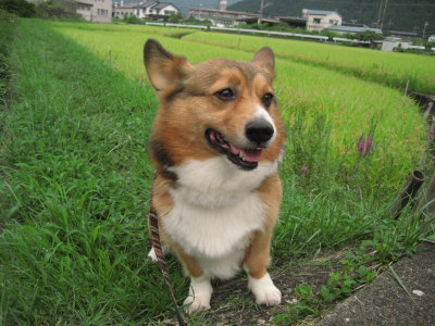 | 9月8日(土) 今日はババが美容院に行ったので、アトムと一緒にお迎え。そして、こちら方面に来た時のいつものお散歩コースへ。ここ久々だっけ?めちゃくちゃハイテンションでした。(苦笑) もう稲刈りしてる田んぼがあったり・・・すっかり秋なのね〜。 |