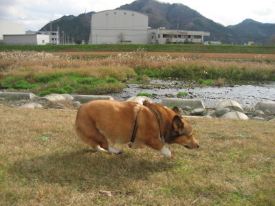 | 12月13日(木) ここんとこ時雨続きだけど、手っ取り早いので河川敷へ。くるっと一周回った後、遊びたそうなので、久々のうん@袋レトリーブ。2回ほどやれば満足だろうと、うん@たっぷりの方で。それの方が良く飛ぶし。(笑) ハイテンションでレトリーブ。続けて2回目・・・。帰って来る途中でアトムが急に袋を吐き出した。どうやらうん@が袋から出てきてしまったらしい。(爆) 幸い、口の中には入らなかったみたいだけど、大慌てのアトム。「危うく食べるところやった(>_<)」って感じか。(笑) 子犬の頃は例にもれずお留守番の時にうん@を食べた事もあったけど、いつの間にやらうん@嫌い。うん@した後はそそくさとその場を離れる。しかも、私が回収したいのに、リードを引っ張って近づきたくないと主張する事が多い。他の子のうん@を発見したらマーキング対象にはするけど、食べたりする事はなく、どちらかと言うと避けて通るので安心だ。 |