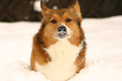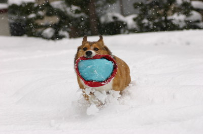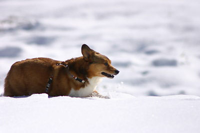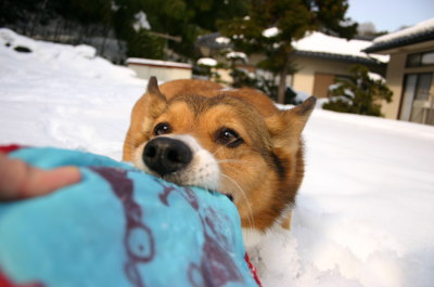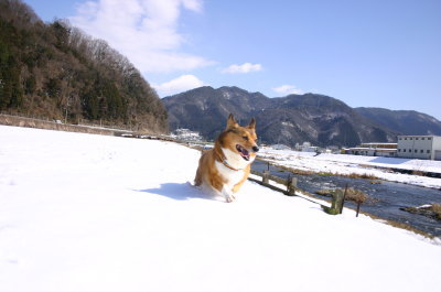 ここんとこの寒波も一息ついた模様で、積雪も数センチ程度。でも時々チラチラしてたけど。雪写真も毎度同じようなものばっかりだし、ワッセワッセと雪の中をバタフライのように走る姿でも撮ろうかと何度かチャレンジしてみたけど、こっちがカメラを構えていると思ったようには走ってくれず、カメラを構えてない時は、いい感じで走る。(-_-;) 写真撮られるのが嫌いなのはよくわかるんだけど・・・もう少し母の趣味にも協力してくれたまえ。 |