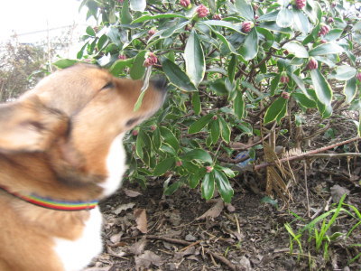 | 3月9日(日) 朝は霜が降りてたけど、日中は暖かい日になりました。ようやくバラの植え替えをした。本来なら12月くらいにやるみたいなんだけど、ずるずるずるずる・・・。もう新芽も出始めてるので、今更やってもいいもんだろうか・・・と思いつつも、ええいっ。思ったより根もまいてなくて、変な幼虫もいなくてホッ・・・。ミミズがいて安心したりして。(苦笑) →まだ蕾が固い沈丁花。匂いかいでるの? |