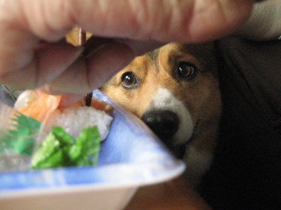 #ババの昼食のお寿司のネタを頂き中。この時はテンション高い。(苦笑) |