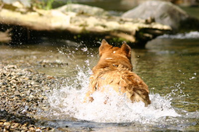 今日は久々に朝の河川敷へ。昨日、旦那にアトムの歩行について聞いたのだけど、よくわからないと言う。でも、私的にはやっぱり後ろ足の力が弱いような気がしてしまうんだけど・・・。それを見る為にもと連れて行ったけど、今日のアトムは匂いとりに必死で、あまり走る事もなく、かと言って無理に走らせるのもイヤだし。ん〜。どうなんだろ・・・。今の所、日常生活にはなんの支障もないようだし、私の取り越し苦労だったらいいんだけどな。 |
