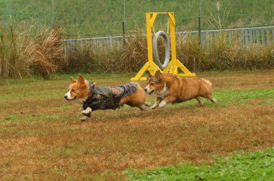 | 11月16日(日) 今日はアトムの兄弟姉妹のオフ会。ところがなんと雨〜〜〜。随分前にこの日に決めドッグランの予約をしていたのに・・・。(>_<) どこかに雨男か雨女がっ・・・と思ったら、実は旦那が珍しく自分も参加する〜と休みをとっていたのでした。(爆) 朝、ドッグランに問い合わせてみると、すでに雨が降ったので地面は悪いけど、もうすぐ止みそうですけどね〜という事。ネットの天気予報でもお昼には曇りになるようだし、春にオフ会が出来なかったので、ドロドロ覚悟で開催する事に。そしたら、参加予定の兄弟姉妹全て集合でした。皆さん、なんと素晴らしい!(笑) 今日ドッグランを予約していた他の人たちは全てキャンセルだというのに。(苦笑) 兄弟姉妹8頭、同居犬3頭の11頭のコーギーが集まりました。アトムは本日も大ちゃん命で、遊んでる邪魔ばかりしてましたが。(^_^;) 犬達はドロドロなんてお構いなしに走り回り、人間もほとんど雨に降られる事もなく無事終了しました。皆さん、お疲れ様でした。m(__)m 久々の爆走なので、ヘロヘロ気味のアトム。途中強制休憩をはさみながらでしたが、最後は得意の乗車拒否。(^_^;) 「もうみんな帰っちゃったよ」と言うと渋々乗りました。(笑) 帰ってからのシャンプー大変だった事でしょう。我が家も帰ってアトムのシャンプー。そして旦那は昨日仕事が入り、夕方から出勤して行きましたとさ。 #シャンプー |