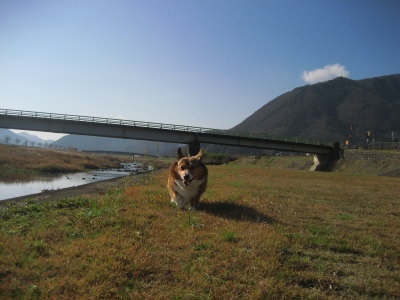 いいお天気なので河川敷へ〜。ババも一緒に歩きました。 |