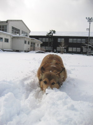 日中は穏やかな本日。田畑の雪も段々溶けてきたなぁ〜と思いながら実家へ。グラウンドの横を通ると、日陰はもう少し遊べそう♪ 今日はやけにテンション高いアトムでした。(笑) ババは今日も相変わらずやる気なしで、ジジは肺活量の検査をしたようだ。 |