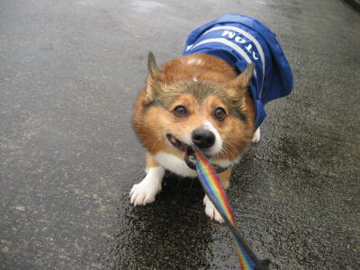 嵐の本日。シーだけは家の周りでなんとか出来たけど、うん@するまでこっちが待てず・・・で、いつ散歩に行こうかと外を見ながら過ごす。3時を過ぎてもまだ止まないし、意を決してお散歩へ。傘がぶっ飛びそうな凄い風。普段、雨の日に長靴なんかはかないけど今日は完全防備で出掛けた。とりあえずうん@が出るまで歩く・・・。びちょびちょ。家まで帰って来ると、こんな雨なのに遊ぶ気マンマンでリードに噛み付いてくるアトム。もうここまで濡れたら一緒か・・・としばしお付き合い。もう思わず笑っちゃうくらい。 |