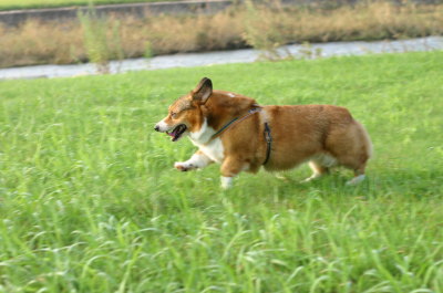お盆休みも終り、川の水も落ち着いてきただろうと久々に早朝河川敷へ。行ってみると、やはり流されてきた草や大木が転がり、植木はボロボロ。結構やられてましたー。(>_<) とは言っても、芝生の広場にはゴミがなかったので、お散歩は出来そう。芝生の上に車の走ったような跡があちこちあったから、そこだけは撤去されたのかもしれないけど・・・。そんな事はおかまいなしに、久々の河川敷でテンションUP〜のアトムでした。 |