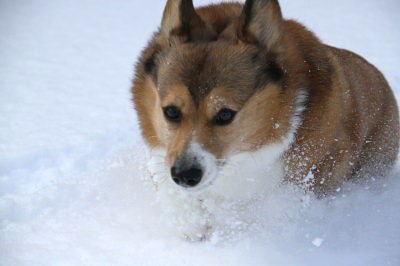 | 1月16日(日) 降った降った。(>_<) ずっと外を見てる訳じゃないけど、たぶんず〜っと降ってた感じ。アトムの体高くらいは積もってるかも。今回の雪は、プラの雪かきに付くし、アトムの毛にも雪玉が付くし、やりにく〜。アトムのテンションは高いけど、全然遊べる感じじゃないし〜。仕事終わりに、お隣のご主人が会社から除雪車に乗ってきてざっと除雪してくれた。あーやれやれ。手じゃおっつかないもんね。 |