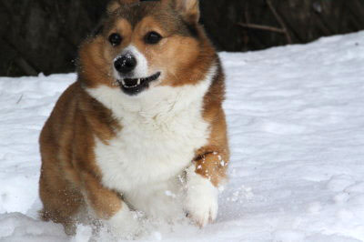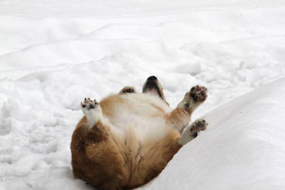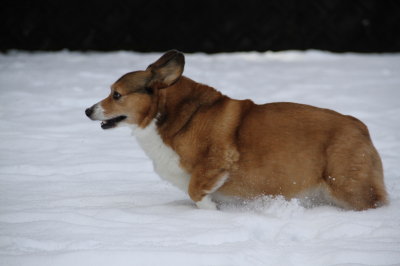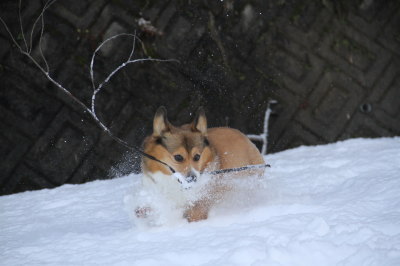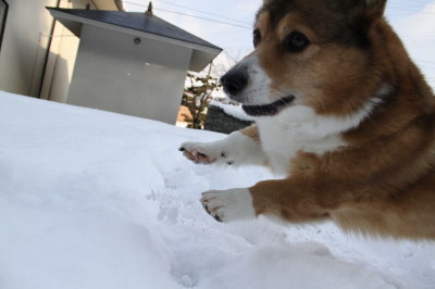 | 1月20日(木) 雪がガチガチ。あまりにガチガチだと足場が悪くて遊ばせられないのよねー。ついまた足を痛めないか・・・が頭をよぎる。 |