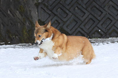 | 3月3日(木) 朝起きると薄っすらの雪景色。お昼前には融けちゃったけど。やっぱり雪が積もってると勝手にテンション上がるアトム。(笑) |