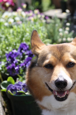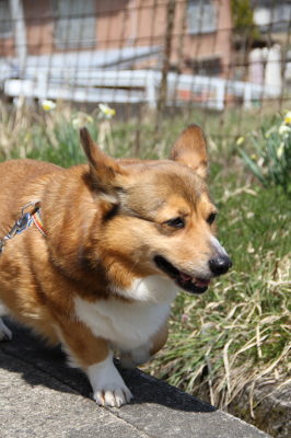 | 4月17日(日) 日差しはあるけど風が吹くと寒い〜。花達のお世話をしてると、1時間なんてあっという間。アトムはそろそろ走ろう!走ろう!が始まってきた。 |