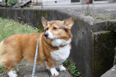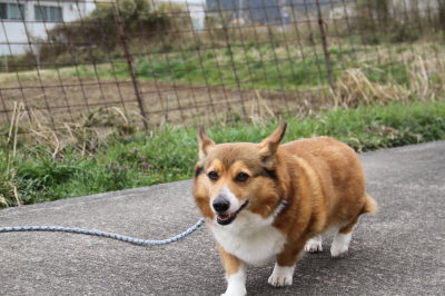 | 4月15日(金) この辺りの今日の降水確率は低かったけど、お昼過ぎからポツポツとき始めた。でも夕方のお散歩の頃には気にならないくらいになってラッキー。 |