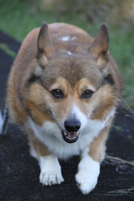 | 11月30日(水) きょうのわんこは13歳のコーギーでした。車椅子の子。先日天国に旅立ってしまったオーシャンちゃんの同居犬のソルくんも、この夏から車椅子でのお散歩生活らしい。やっぱりコーギーは胴長短足で腰を痛めやすかったり、後ろ足が弱くなりやすいのか、なんとなく車椅子の子が多いような気がする・・・。アトムに・・・出来ればずっと自分の足でお散歩させてあげたい。切に願う。旦那宿直。 |