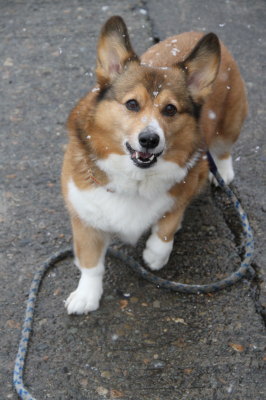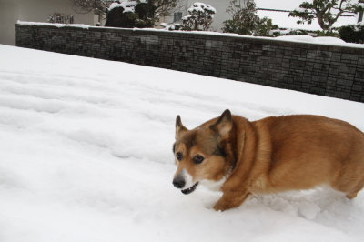 | 1月24日(火) 昨日の夜にアトムのトイレに外に出たら、雪が積もり始めてたのに、朝お散歩に出てみると道には積雪なし。あれれ。今回の雪はもっと海側が降ってるみたい。お昼前くらいまで雪は降ってたけど、結局積雪はなし。 |