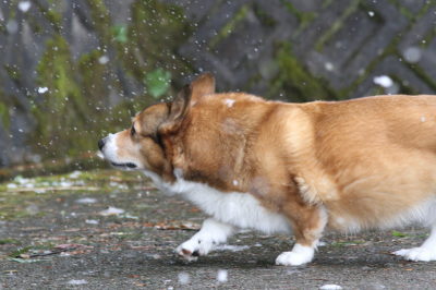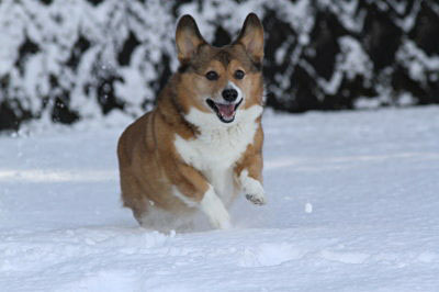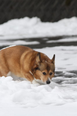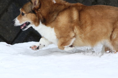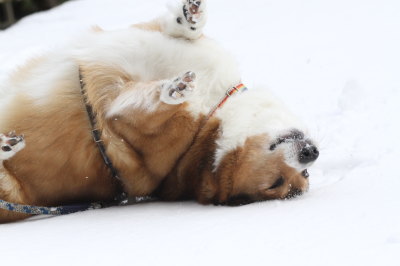 | 2月10日(金) 少々の寒さはへっちゃら感のあるアトム。毎日のように雪にすりすりゴロゴロ。(^_^;) あまりに寒いのになかなか家の中に入ろうとしない時は、「そんなにお外がいいんなら、お外の子になる?」と言うと、一発で家の中に入る。(笑) 私ってイジワル〜。 |