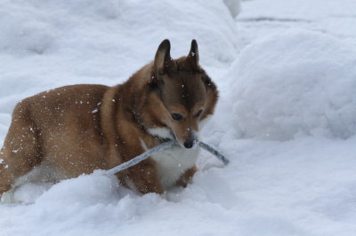 | 2月18日(土) 今シーズン一番の積雪になりました。夜になっても大雪警報は解除にならず。アトムの体高くらいは積もってるので、なかなか雪遊びが出来ない。(^_^;) 雪かきもちょっとやそっとじゃ終わらないし。やってもまた積もる〜。3時頃旦那が除雪車で雪かきしてくれた。会社の福知山方面から通勤してる人は3時間くらいかかったらしい。ここまでの雪はもう終わりにして欲しいなぁ。 |