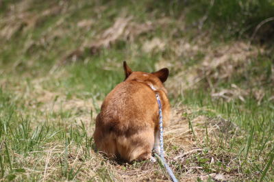 | 5月24日(木) 外にいる時に、お隣の奥さんが猫のももちゃんを連れて出てきた。それに気がついたアトムは「出して〜」と主張。「ももちゃんいるよ?」って言ったけど、それでもいいって言うから出したのに、ももちゃんが近づいてきた途端家の中へ。(苦笑) ももちゃんが苦手ってのは、いつまでたっても変わらないらしい。 |