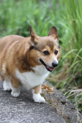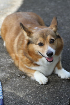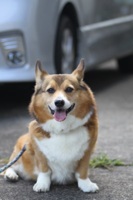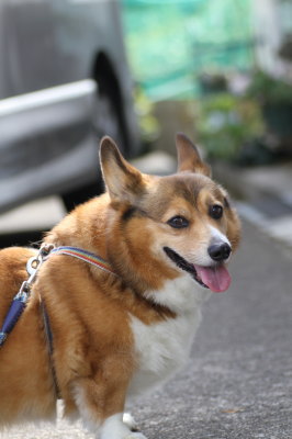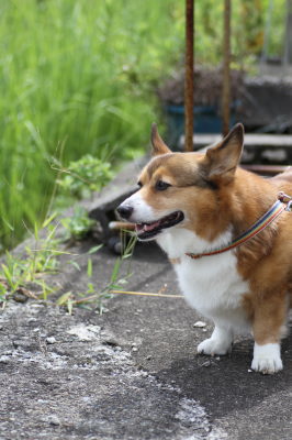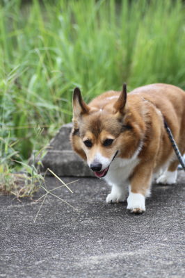 | 8月24日(金) 暑い暑い。まだまだ暑い。夕方のお散歩は6時過ぎにしてるので、さぁお散歩行こうと思って外に出たら、雨がポツポツしてる。ひゃー。道理で外が暗いと思った。でももうそろそろ行っとかなきゃだし、プルオーバーを着せて傘さしてお散歩に出掛けたら、途中で止んだ。結局、雨が降った・・・って程降らず。週間予報見ても雨マークなし。たまには降ってもいいよー。 |