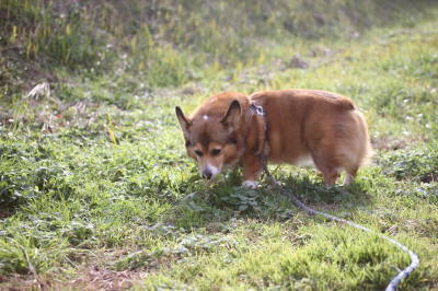 今朝は冷え込む予報で、確かに少し寒かったけど、霜が下りる程ではなかった模様。アトムに催促されて、夕散の時間がどんどん早くなってる〜。 |