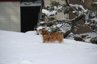 | 1月19日(土) 今朝はガチガチ。温度計は−5度にちょっと届かないくらい。あちこちツルツルで、こういう日の朝イチのお散歩は近場で済ます。雪があるとアトムも納得してくれる。(苦笑) |