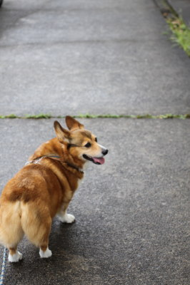 | 7月18日(木) 朝起きた時は曇りだったのに、さぁお散歩行こうと思ったら雨・・・。最近は不安定な天気が多いなぁ。今朝の「きょうのわんこ」は久々のコーギーだった。コーギーの登場回数も減ってしまったなぁ・・・としみじみ。 |