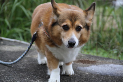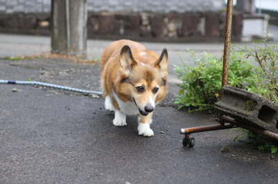 | 10月22日(火) 今朝のお散歩は、片道の半分も行ってないのにうん@が済んだら、帰る〜って。(^_^;) 今日はアトムの目薬やらを貰いに動物病院へ。夕方は行きは歩いて、帰りはカートのパターンで散歩。 |