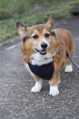 | 10月28日(月) 今朝は朝もやで真っ白。ちょっと寒くなってきた。アトムはやっぱり少し痛そう。カートを持参でお散歩。今日は実家の地区のお寺の大奥さんが亡くなって、お葬式。ジジババの仲人でもあるし、中学の頃お花を習ってたし・・・で参列。帰るところでジジと遭遇、一緒に歩いて実家に戻り、兄が昨日採ってきた柿を貰って帰った。新調したお散歩エプロンが届いたので、試してみた→。サイズはOK。3時からは歯医者さん。 |