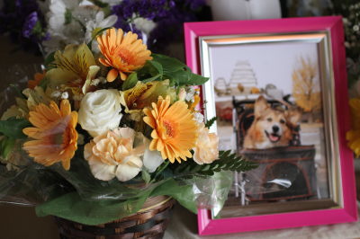 | 2月9日(月) 今日は旦那のお休み。そしてあの日から3週間・・・。お友達のPちゃんから、アトムにお花が届いた。またアトムの周りが華やかになった。ありがとう。お昼ご飯は「ポムの樹」へ。その後、買い物をしてジジに届けて帰宅。 |